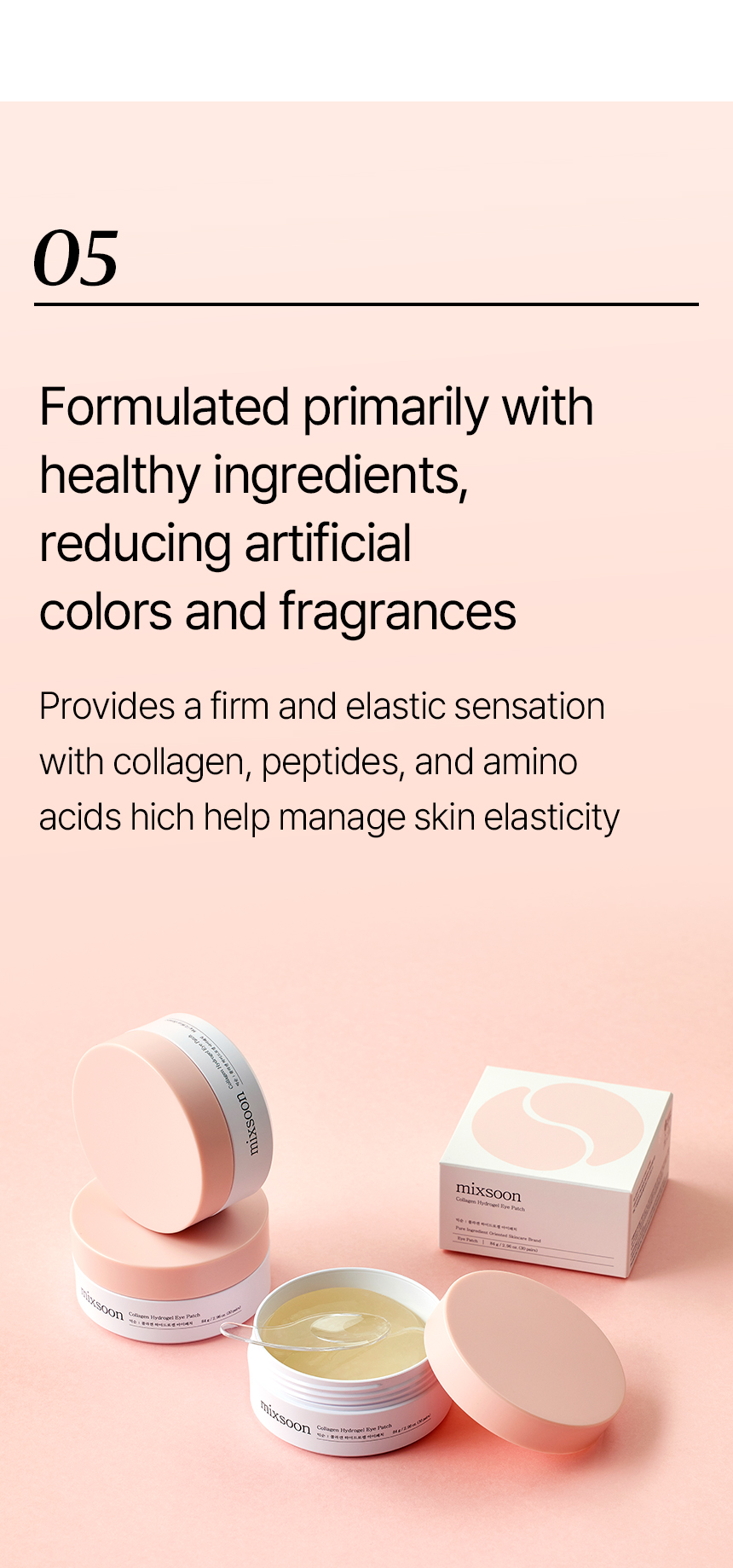 With a hydrogel patch containing collagen with a molecular size of 300Da, it revitalizes sagging and dry eye areas in just 30 minutes. Contains 17 types of amino acids to maintain moisture for a long time. Contains peptides to care for skin that has lost elasticity and strengthen the skin barrier. Based on key ingredients such as collagen, peptides, and amino acids that help manage skin elasticity, it provides a firm and elastic feel.