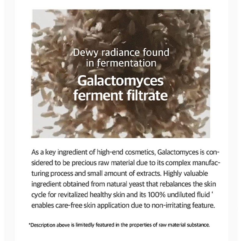 - 100% galactomyces ferment filtrate. No alcohol, no fragrance. A reliable EWG green grade essence that is also supplied to postpartum care centers, facials and spas. (*Results may differ based on the individual, so it is essential that you do a patch test before use.)