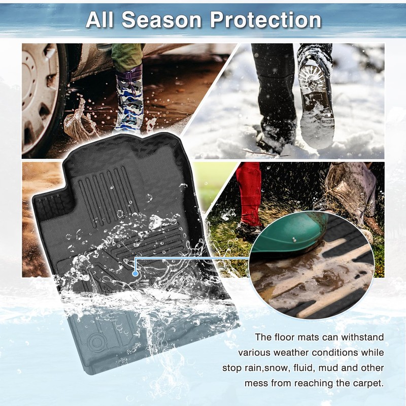 - All Weather & Safe TPE Material: Floor mats are made of TPE materials featuring waterproof, durable, wear-resistant, non-slip and odorless. High tensity and safe TPE material keeps its flexibility in all season while still offering an excellent feel and extreme wear resistance.