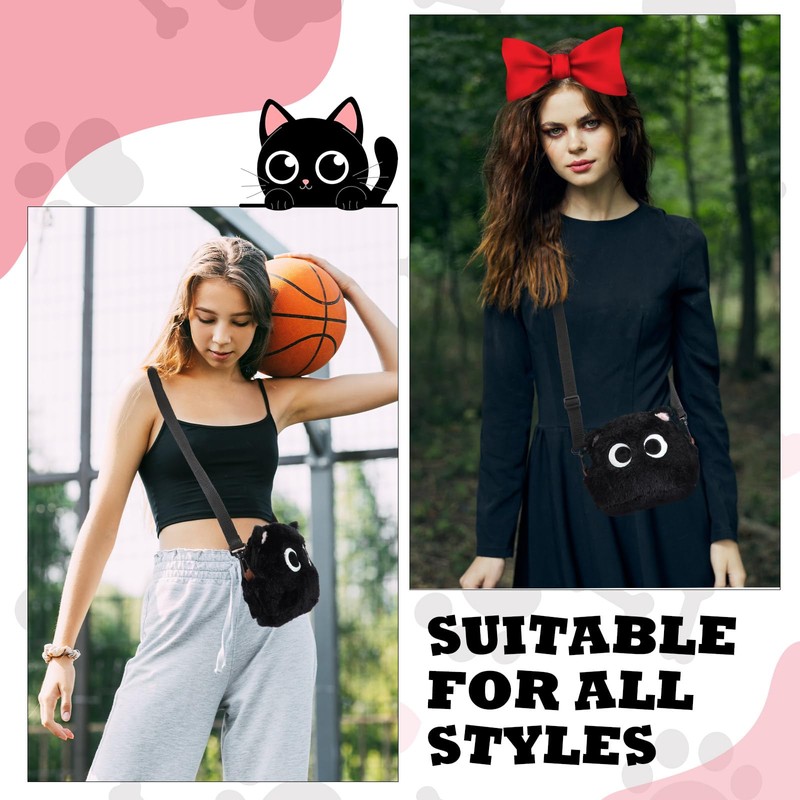 - Cute Pattern: the cute purse is designed with black cat pattern, use pink plush and pearl ball as blush to add it lovely, steel wire is built into the ears of the bag, which can be adjusted as like