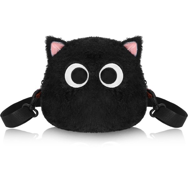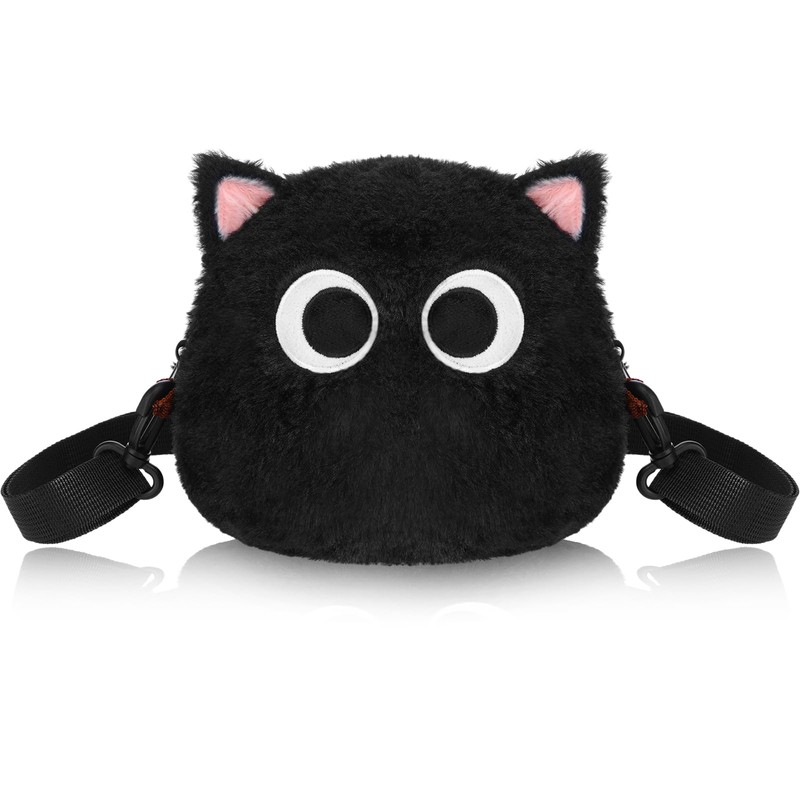 Mixweer Crossbody Bag Cute Plush Purse Backpack Kawaii Wallet Girls Cartoon Animal Lolita Bag with Chain Strap (Black Cat)