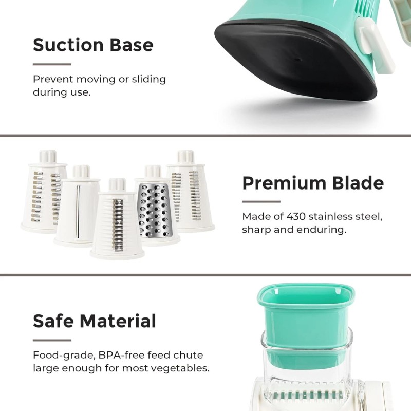 • Effortless Cleanup: The detachable drum blades make this kitchen cheese grater easy to clean—just rinse under the faucet or place in the dishwasher. Enjoy cooking more with minimal cleanup effort