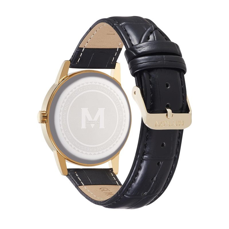 Miykon Casual Analog Watches for Men - Minimalist Easy Reader Mens Dress Watches with Genuine Leather Strap - Ion Polished, Scratch Resistant Glass, Japanese Quartz, Waterproof to 100ft, Gold Case