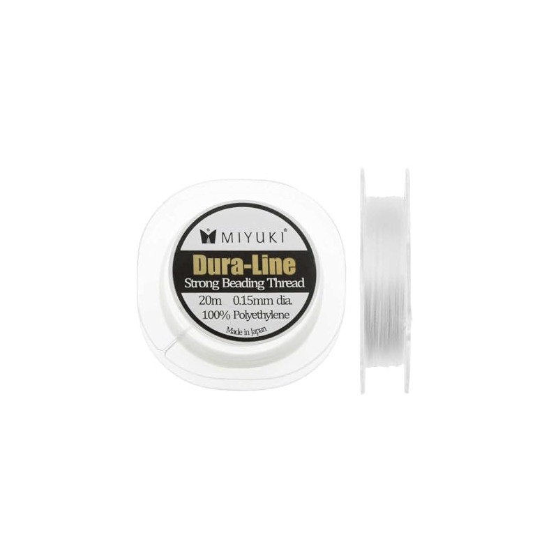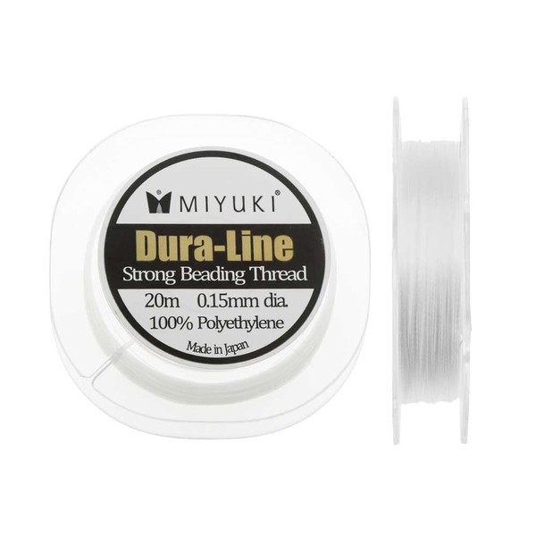 - Quantity: 1 spool of 20 meters of White 0.15mm Miyuki Dura-Line bead thread.
