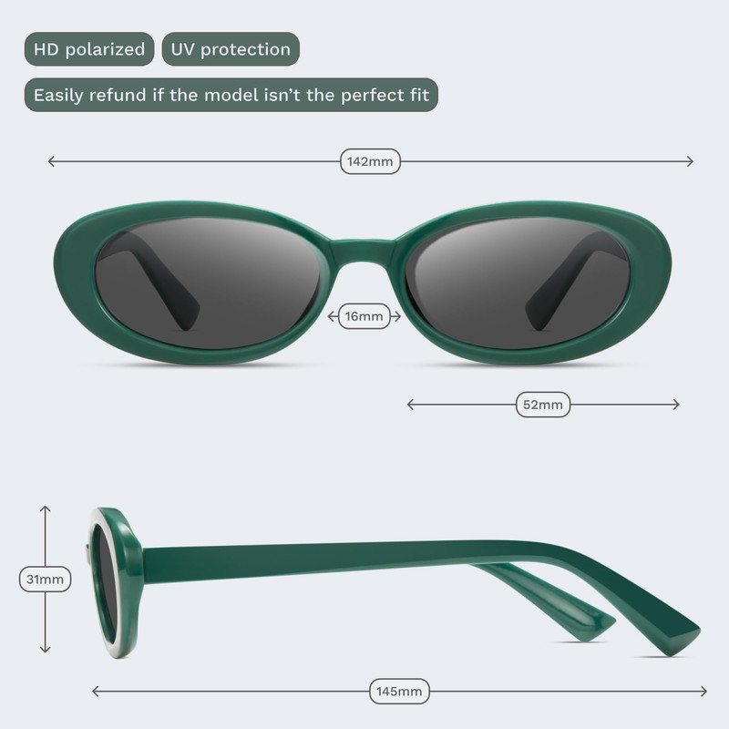 - PERFECT FOR OUTDOORS: The TAC coating on these oval sunglasses for women and for men do not absorb water easily, avoiding water droplets from blocking your vision, making these retro oval sunglasses for women men suitable for rainy days, beach trips, and more. Plus, the metal hinges on the cute sunglasses for women men make them extra-sturdy.
