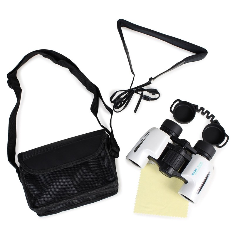 MIZAR Binoculars, 6 Times, 0.9 inches (24 mm), Diameter Porro Prism Type, Standard Pearl White