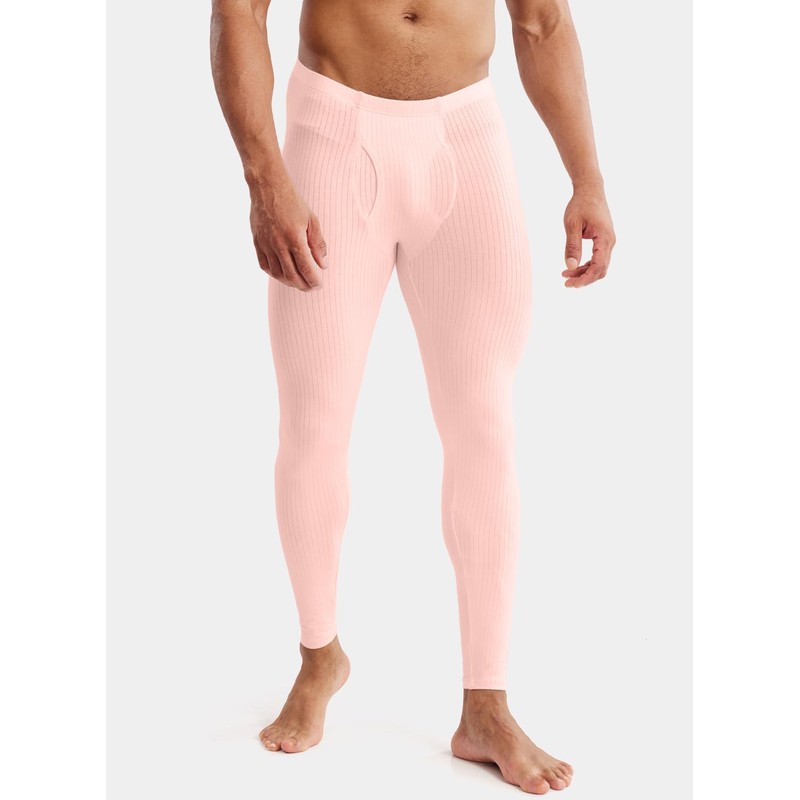 MIZOK Men's Ribbed Knit Compression Pant Cotton Thermal Leggings Pink S