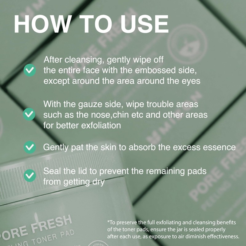 MIZON [MIZON PORE FRESH PEELING TONER PAD (x60) Korean Skin Care - Gentle Exfoliating Tampons with AHA, BHA & PHA - Deep Cleansing and Sebum Control for Sensitive Skin