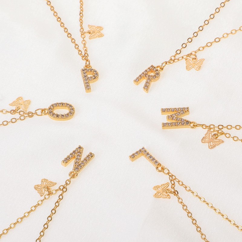 MJARTORIA Initial Necklace A to Z Gold Capital Letter Necklaces with Crystals Butterfly Pendant for Women Girl (Gold-Butterfly Initial G)