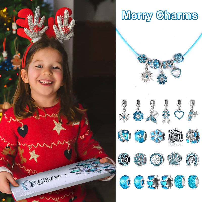 - Lake Blue Jewelry Gifts Box Design for Holiday Fun: --How do attach the charms to the bracelet? --You have to unscrew the clasp from the bracelet, slide on the charms, and then screw the clasp back on again. Our DIY jewelry advent calendar 2024 for teens women adult contains 24 pieces. Inclued 22 individual light blue metal beads pendants+1 bracelet (about 4 inch)+1 necklace (about 8 inch) for DIY jewelry as Christmas gifts