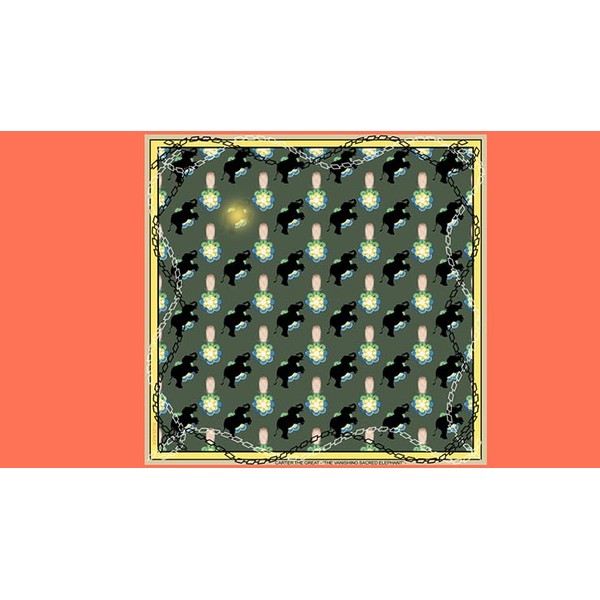 Inspired by a lithographed poster by the Otis Litho Company, Cleveland, OH; this "Pocket Devil" features the jewels from Carter's exotic turban, influenced no doubt by his lengthy and numerous tours in the Far East; the chains which hoisted the elephant, both before and after the vanish and the silhouette of the elephant itself.