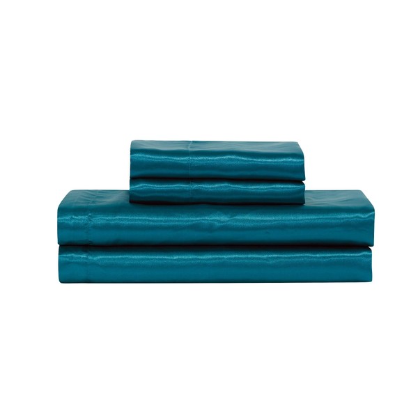Mk Collection Soft Silky Satin Solid Color Deep Pocket Sheet Set (Teal, Full)