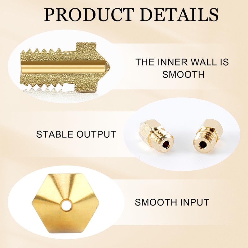- Durable and efficient: the brass extruder nozzles provide better thermal conductivity and effectively prevent clogging of the filament. Recommended for standard temperature pressure with smooth filament flow