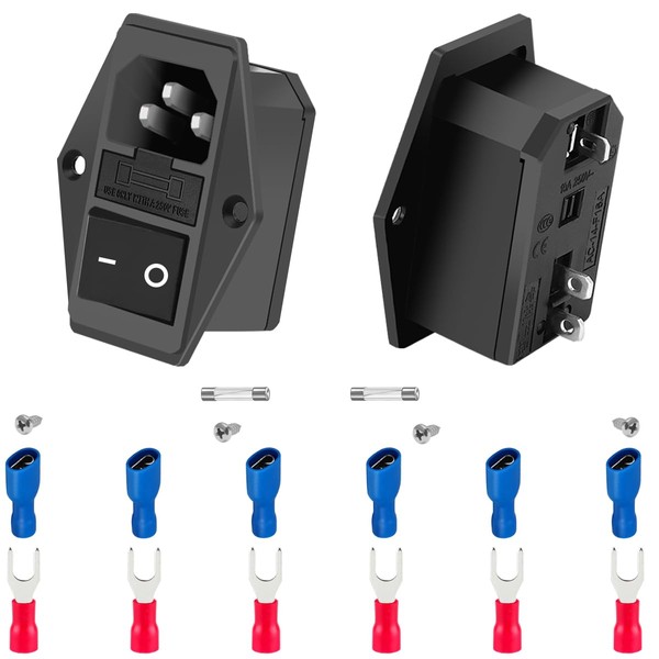 MKBKLLJY 2PCS Inlet Module Plug Male Power Socket 3D Printer Arcade Power Switch 10A 250V AC Rocker Switch Adapter Power Connector 3 Pin AC-14-F16A with 10A Fuse Terminals Fork Connector Screw