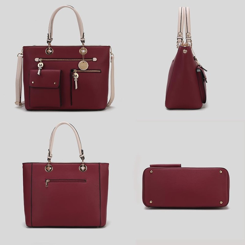 - Upgrade your everyday look with the MKF Collection Julia Satchel Bag for Women by Mia K, a stylish and functional handbag that blends fashion with versatility. Designed in premium vegan leather and accented with elegant gold-tone hardware, this color-block purse is the perfect statement accessory for the modern woman.