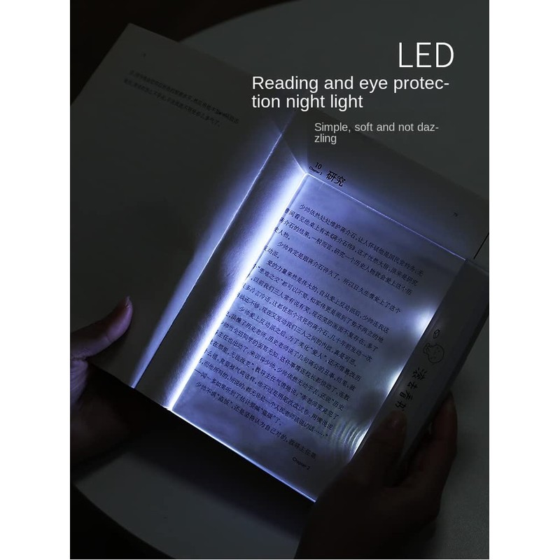 - Diseño moderno: diseño novedoso: esta luz nocturna para libro adopta un diseño estructural novedoso. Después de encenderse con un solo clic, el panel transparente se ilumina, proporcionando una luz clara y brillante en la posición de lectura sin emitir luz alrededor. Por lo tanto, no hay necesidad de preocuparse por afectar al resto de los demás. Es especialmente adecuado para su uso en camas en dormitorios de estudiantes escolares o para viajes de negocios de cuello blanco