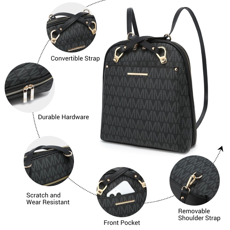 MKP COLLECTION Womens Convertible Backpack Purse Multi-Pocket Handbag Fashion Designer Ladies Shoulder Bag for Travel Work, Black-1