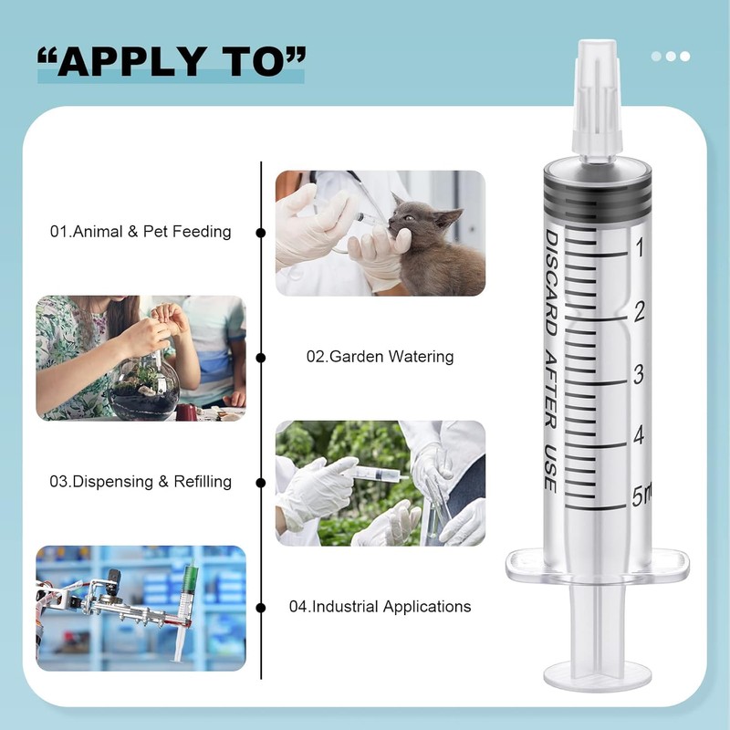 - Range of application: each syringe is individually sealed, clean, safe and sterile, and can be applied for storage of essential oil, perfume, lubricants, sealants, etc.; And it's also suitable for the storage industrial inks, or as a tool for feeding animals