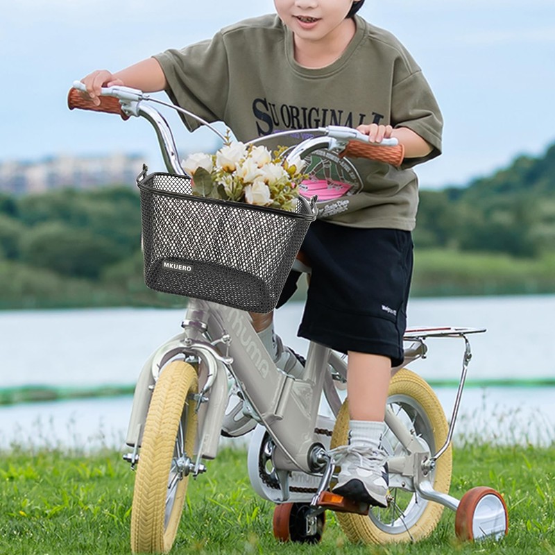Mkuero Kids Bike Basket, Front Bicycle Basket for Boy and Girl for Kids Bikes, Balance Bikes, Scooters (White)