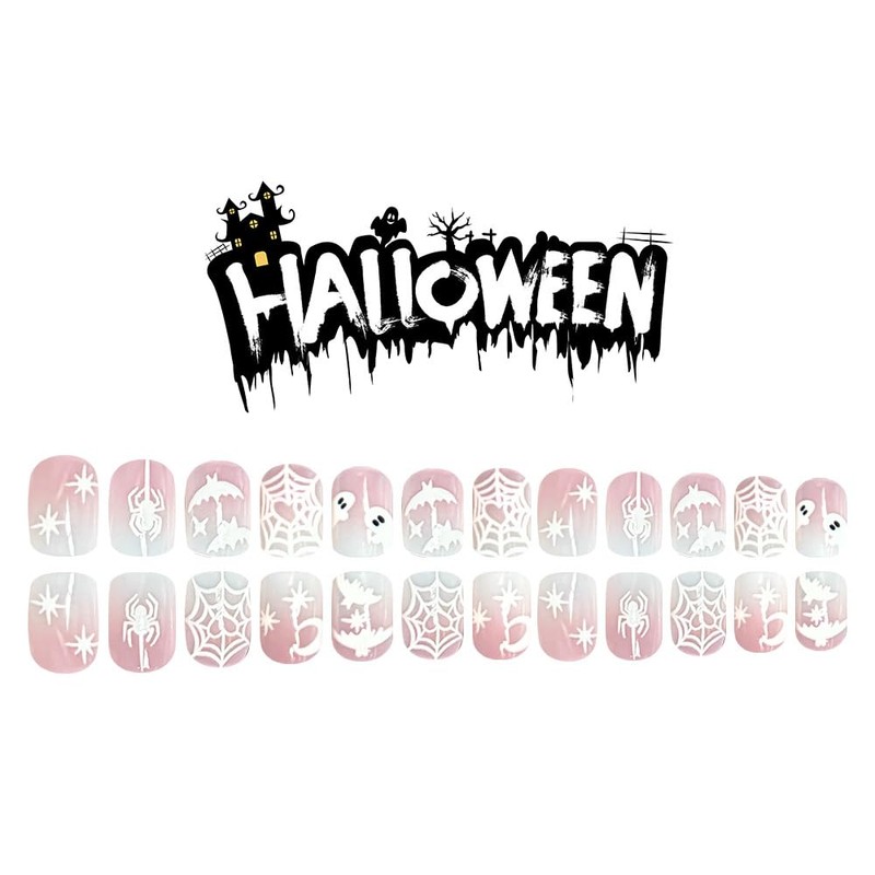 - 【Easy Application】Halloween fake nail with ghost designs just choose the nail piece that suits you, polish the nail bed, paste the jelly glue we give away, and press trendy nails for 30s to get the natural manicure that girls like.