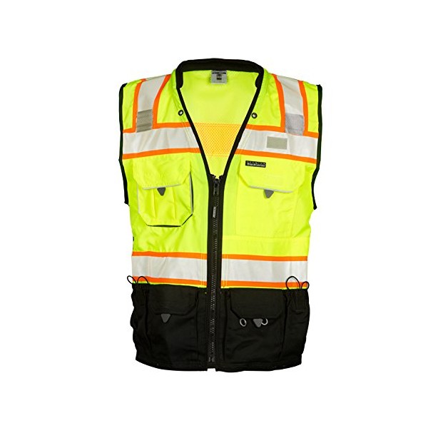ML Kishigo S5002-2XL Class 2 Lime Surveyors Safety Vest | Solid Polyester | Heavy Duty Black Bottom | Reflective Material Laminated | Padded Neck
