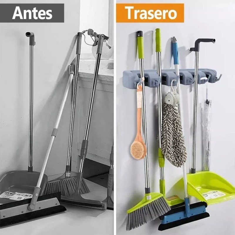 ML Organizador Con Trapeadores Y 5 Espacios Para Colgar Escobas