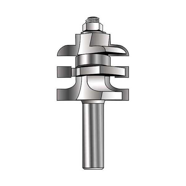 2 flute, carbide-tipped with totally enclosed ball bearing guide. The easy way to make perfect rails and stiles with only one bit. Cut rails and stiles without having to reverse, switch or reassemble cutters, or without having to remove the bit from your router. All that is required is to simply lower or raise the bit. For best results use only with your router mounted in a table. 1/2" Shank