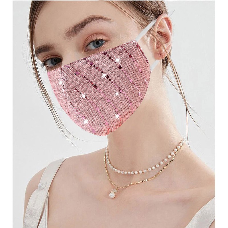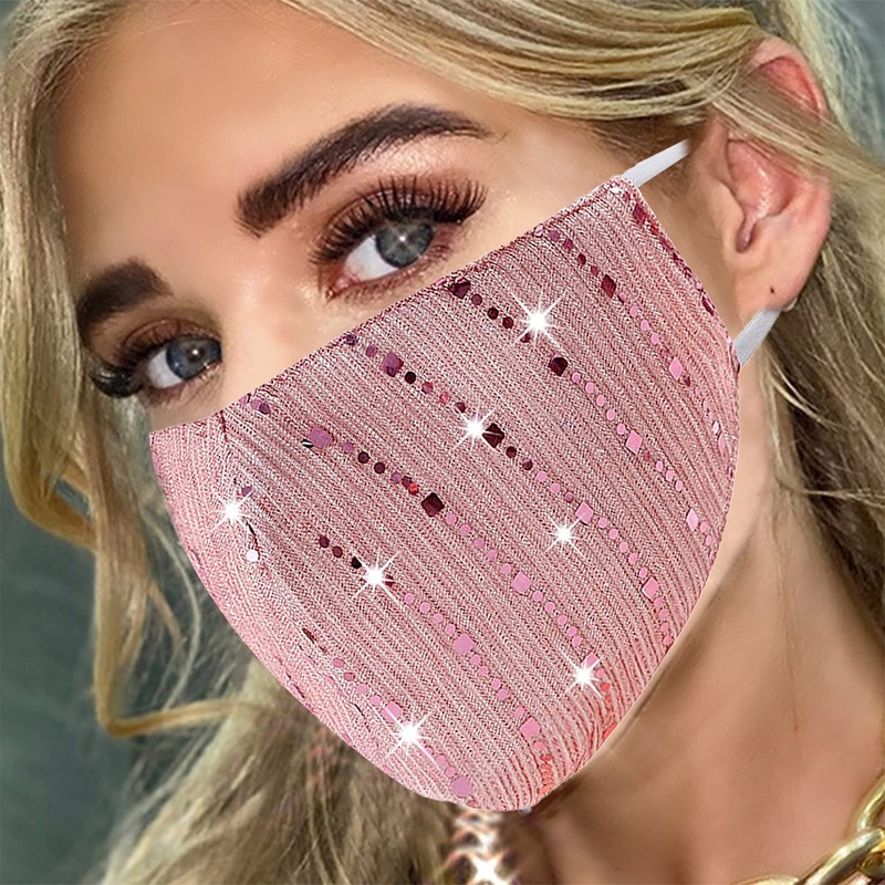 MLGDA Sparkly Sequins Face Cover Glitter Cotton Sequin Masc Masquerade Face Covering (C-light pink 1)