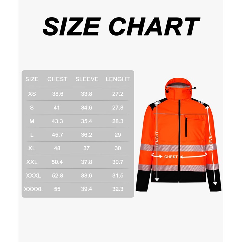 - Size: Please refer to the size chart before purchasing safety jackets, which includes chest and length data. If you like a loose fit or measure between two sizes, take one or two sizes up.