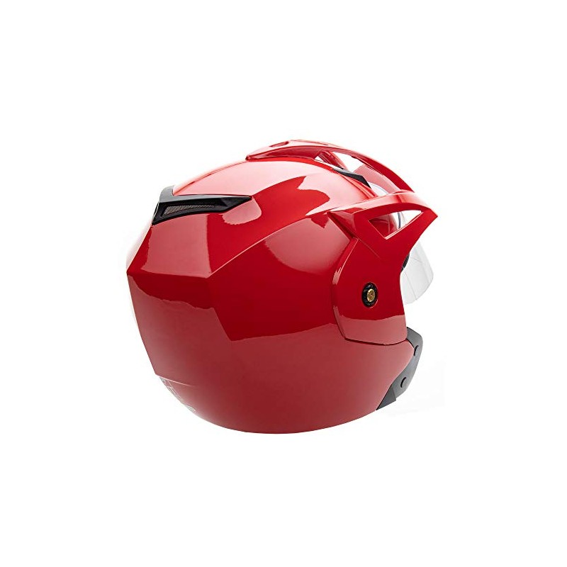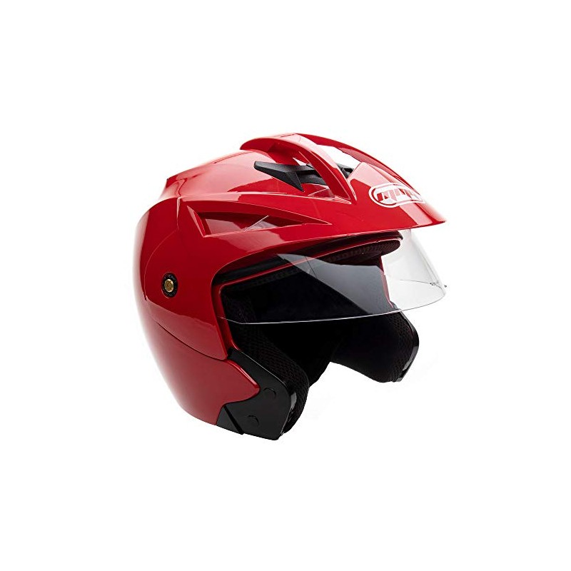 MMG (Model 20) Motorcycle Open Face Helmet DOT Street Legal - Flip Up Clear Visor (M, Shiny Red)