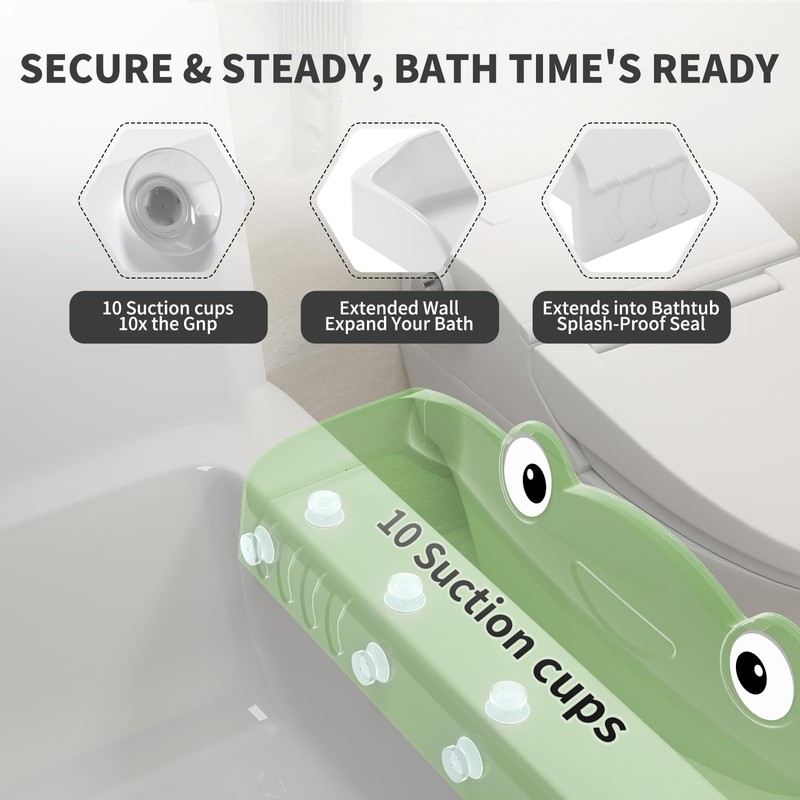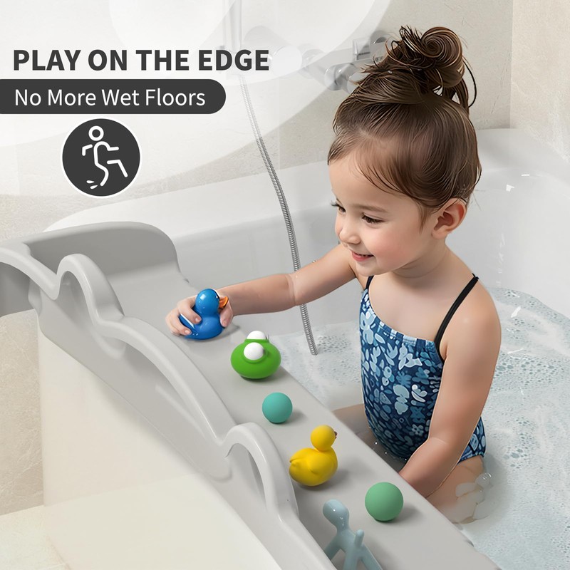 - Extension design: It measures up to 3 feet in length, providing the maximum play area while still leaving room for getting in and out of the bathtub.It extends outward beyond the edge of the bathtub, increasing the play space. Moreover, it has an edge that extends downward into the bathtub, which can keep the water inside the bathtub.