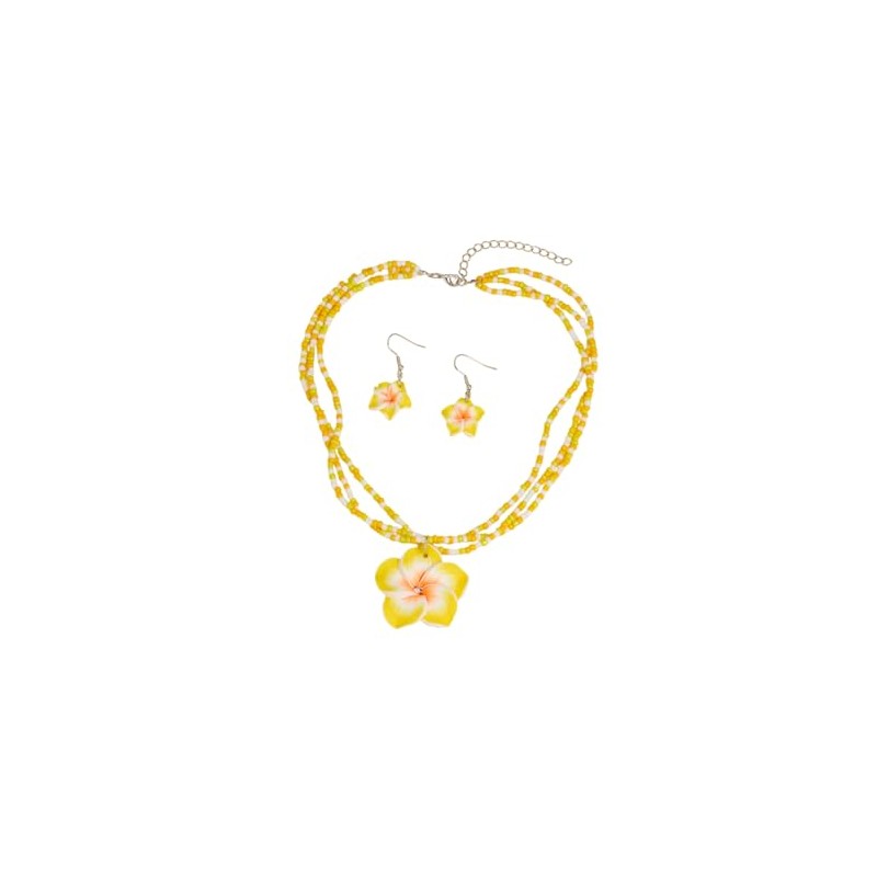 MMIUAEG Hawaiian Flowers Earrings Necklaces Set Bohemian Flower Dangle Earrings for Women Beach Holiday Summer Jewelry Accessories (Beaded Yellow)