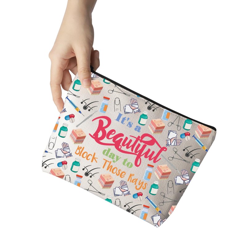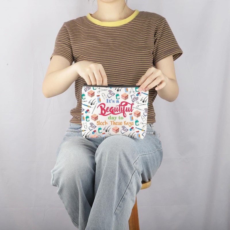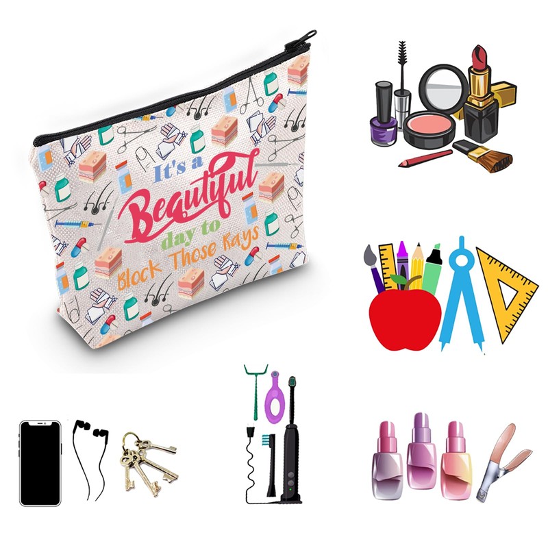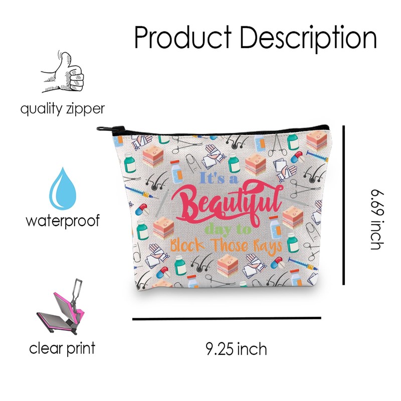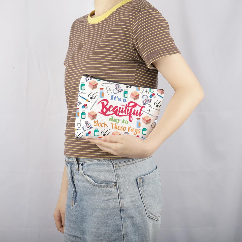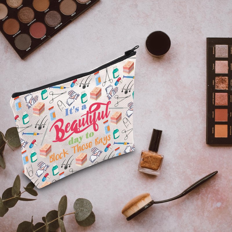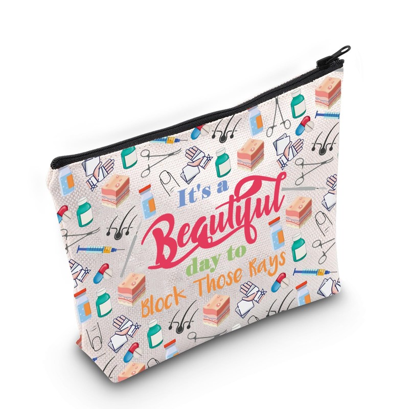 MNIGIU Dermatologist Gift Skin Doctor Gift It’s a Beautiful Day to Block Those Rays Makeup Zipper Pouch for Dermatology Nurse (Block Those Rays), Medium