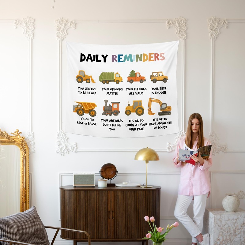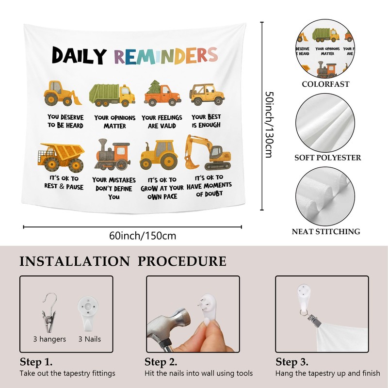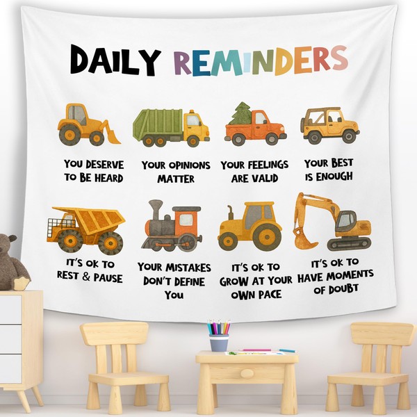 MNOSAIOO Mental Health Car Wall Tapestry Hanging for Classroom Kids Boys, Daily Reminders Tapestries, Nursery Traffic Wall Decor Art for Bedroom Playroom Therapy Office School Counselor Home 50x60in