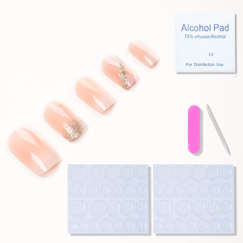- PACKAGE CONTENTS - We have 24 pieces of press on nails, a nail file, and 48 pieces of Jelly Glue in every pack of our fake nail kit. Different sizes to accommodate the different sizes of your nails. A complete nail kit for women to give them a lasting glow on their nails