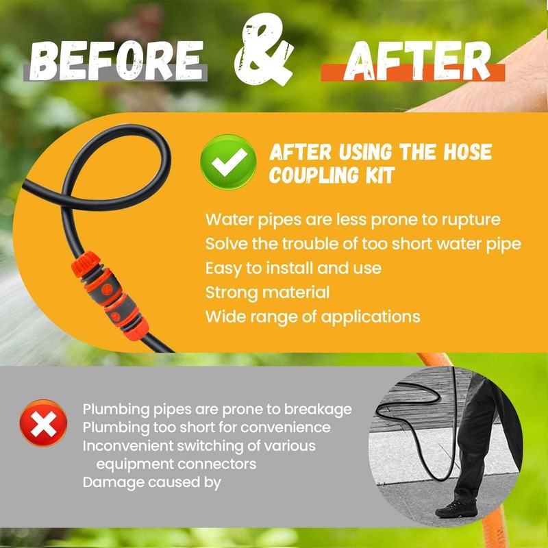 • Multifunktionale Einsatzbereiche: Nutzen Sie die Schlauchverbinder für Gartenbewässerung, Autowäsche, Terrassenreinigung oder als praktisches Zubehör für Hochdruckreiniger und Poolpumpen