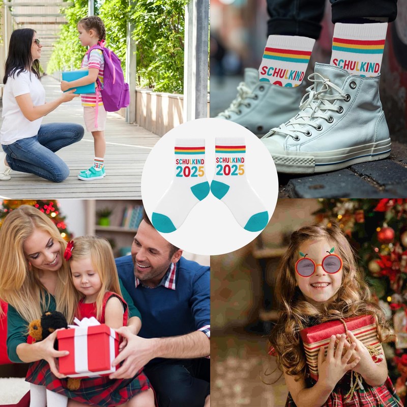 - Motivdesign mit Botschaft: With Schulkind 2025 Mädchen Schriftzug und farbenfrohen Streifenmuster gestaltet, verleihen diese Socken jedem Einschulungsoutfit einen persönlichen Charakter und eignen sich ideal als Geschenkidee für Schulstarterinnen