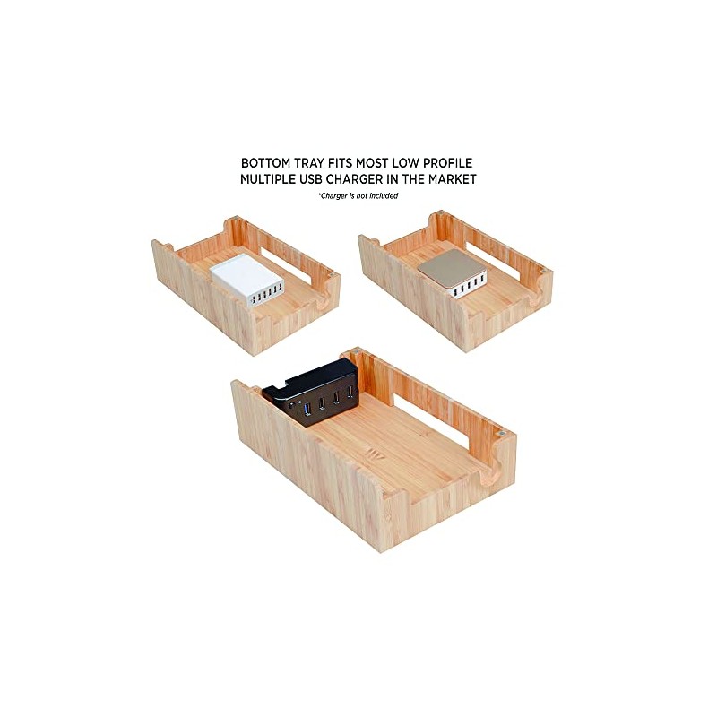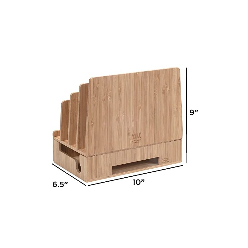MobileVision Bamboo Charging Station & Multi Device Organizer Slim Version for Smartphones, Tablets, and Laptops