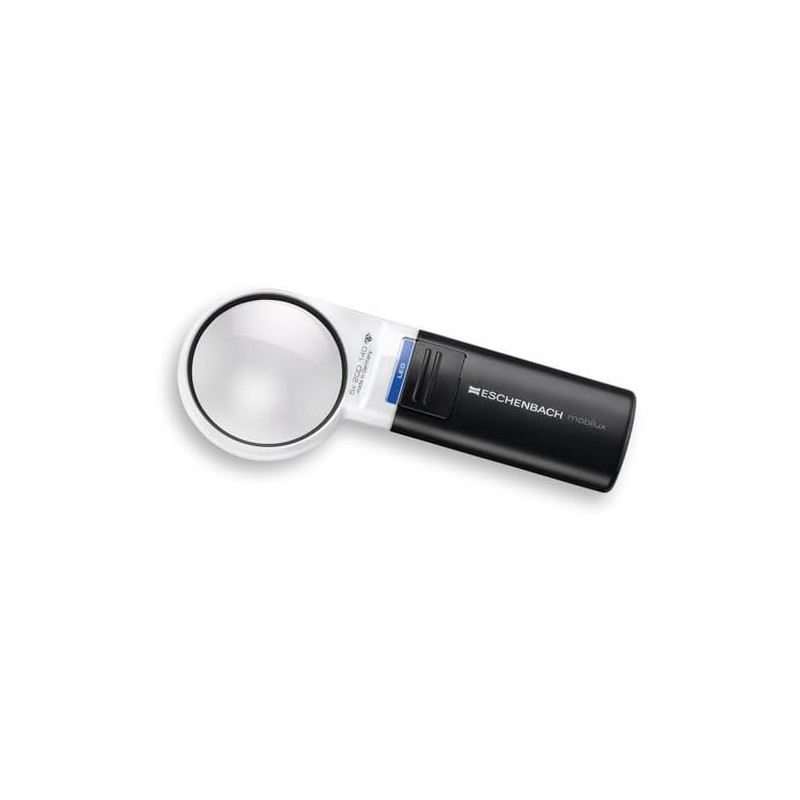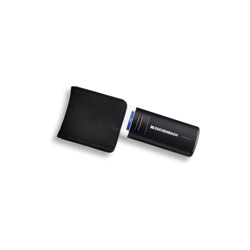 - Box contents: magnifying glass, 3 clip-on colour filters for the most suitable colour temperature and light intensity, case for attaching to the lens, 2 x AA demo batteries. Optional: stand / holder mobase from Eschenbach Optik for ambidextrous reading and working.
