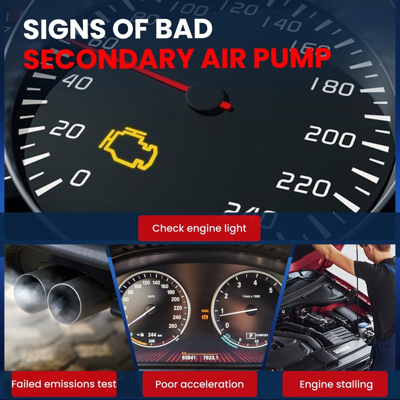 - If your vehicle has experienced engine stalling, poor acceleration, and a check engine warning light, you need to immediately check the secondary air injection pump