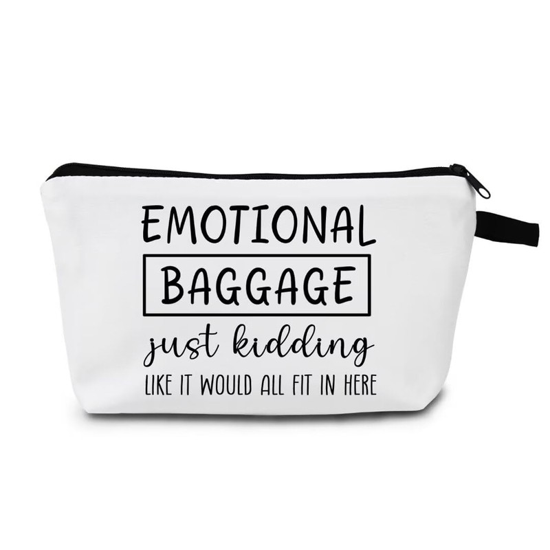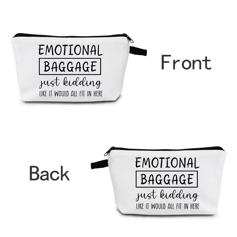 MoCaliduccious Funny Gifts for Women Sister Teen Travel Makeup Bag Emotional Baggage Cosmetic Bag with Zipper (White)