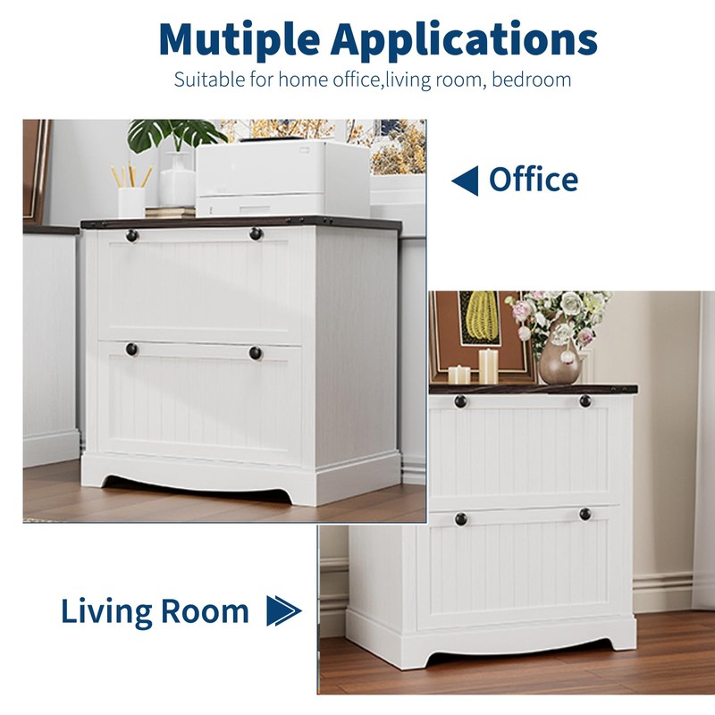 • [Classic Farmhouse Design] This Horizontal Filing Cabinet Incorporates Timeless Farmhouse Elements. Drawers Feature A Unique Wood Panel Pattern, Antiqued Metal Handles, And A Scalloped Base For A Striking Visual Effect, Adding Warmth And Personality To Your Home Or Office.