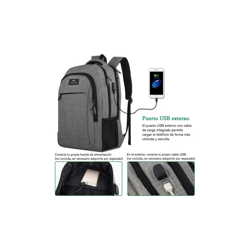 Mochila De Viaje, Mochila Para Laptop 15.6 Pulgadas, Mochila Escolar, Antirrobo Y Impermeable, Matein 1007 Color Gris
