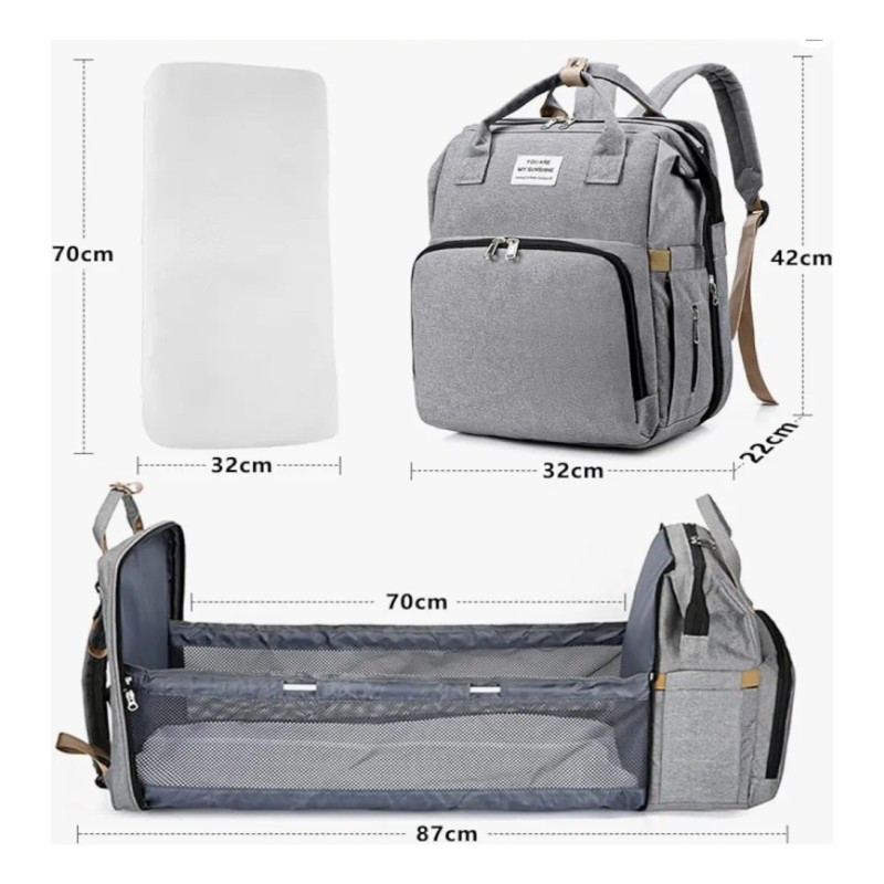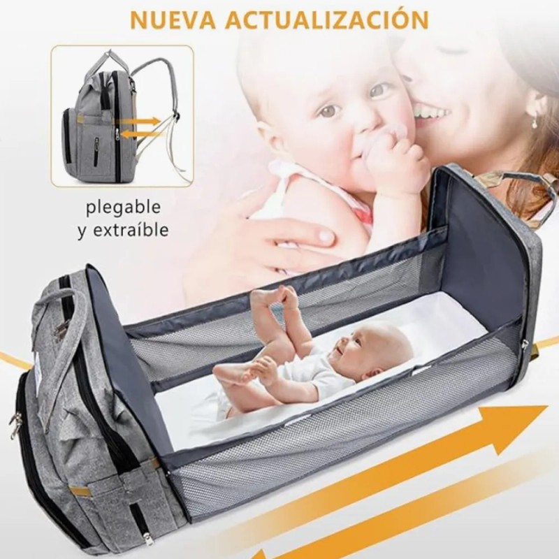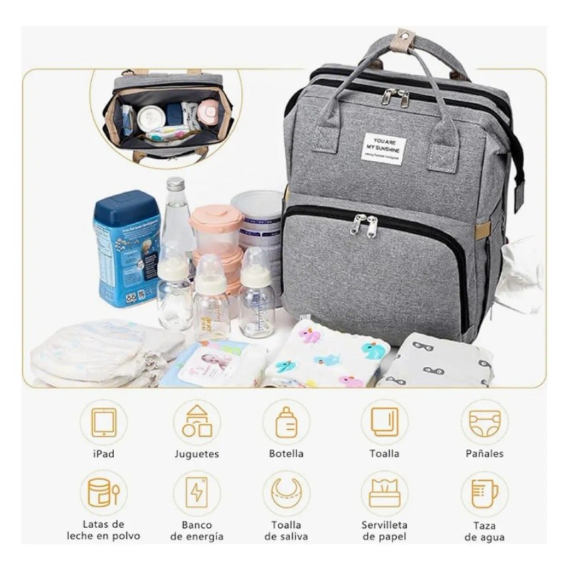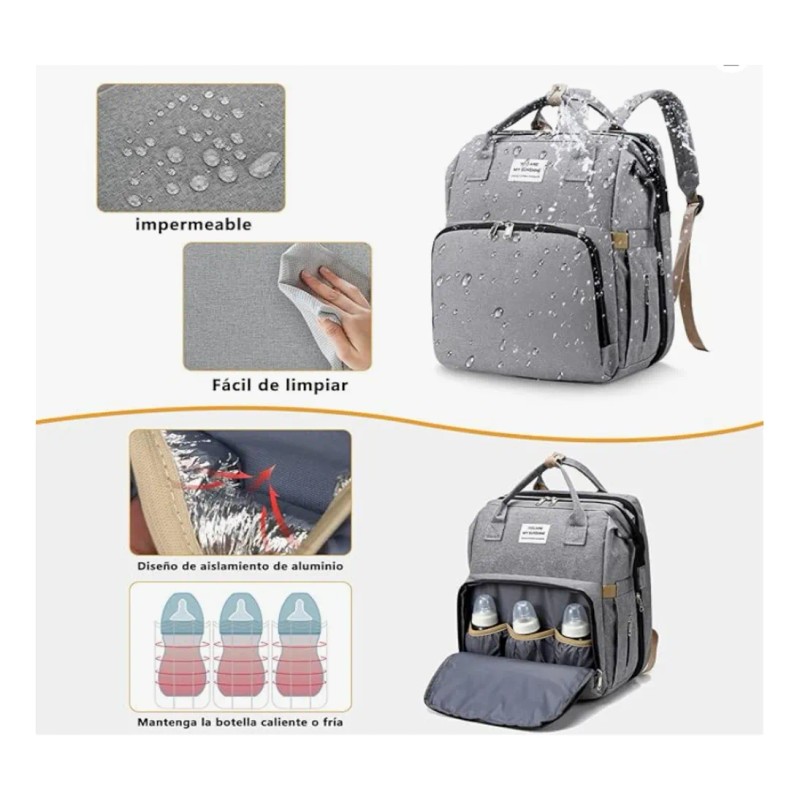 Mochila Pañalera Bebé Multifuncional Impermeable Usb Gris Nube
