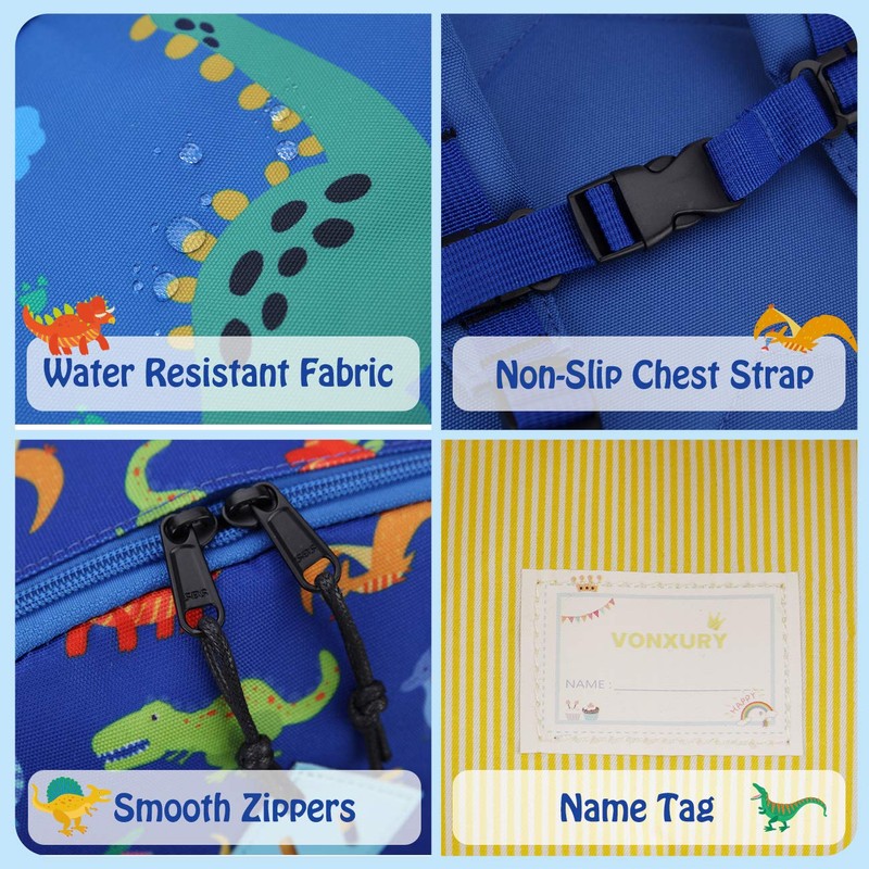 - Diseño único: con un colorido y único patrón de dinosaurio/unicornio/estronauta, la mochila VONXURY para niños inspirará la imaginación y la curiosidad de tus hijos en su vida diaria. Construido con materiales ligeros y resistentes al agua, la mochila para niños pequeños proporciona una buena protección para los libros, deberes y otros valores. Adecuado para más de 3 años.