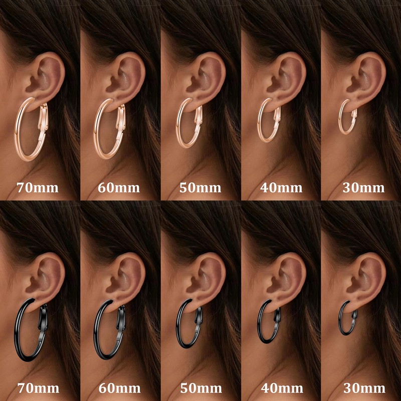 - 【Größe Der Ohrringe Creolen】 Die ohrringe sind mit elastischen ohrclips versehen, die leicht zu tragen sind und nicht so leicht abfallen können. Der außendurchmesser der großen ohrringe beträgt 20mm/30mm/40mm/50mm/60mm/70mm, und die ohrringstifte sind 0,8mm dick (20G). Wir bieten verschiedene größen von ohrringen, können sie die richtige ohrring-set nach ihren bedürfnissen zu wählen.