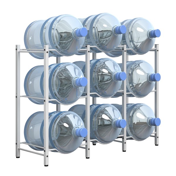 mocomax 5 Gallon Water Jug Rack, Detachable Water Bottle Holder for 9 Bottles, 3 Tier Heavy Duty Water Cooler Jug Rack, Water Bottle Organizer Storage Rack for Kitchen, Office, Living Room, White