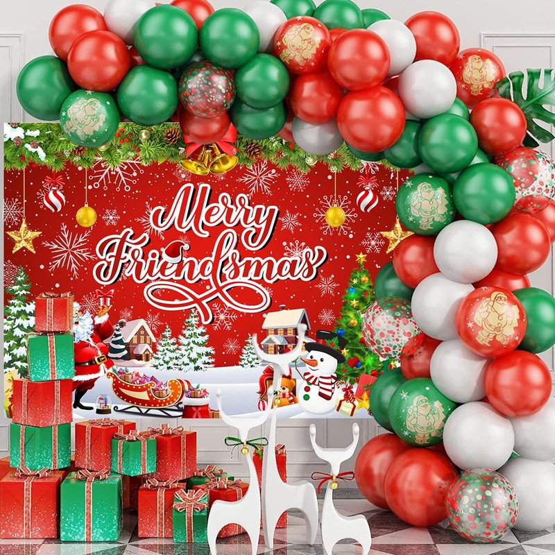 Mocsicka 7x5ft Merry Friendsmas Backdrop Christmas Party Decoration Christmas Photo Banner Signs Xmas Photography Background for Winter New Year Xmas Eve Family Party Decoration Supplies