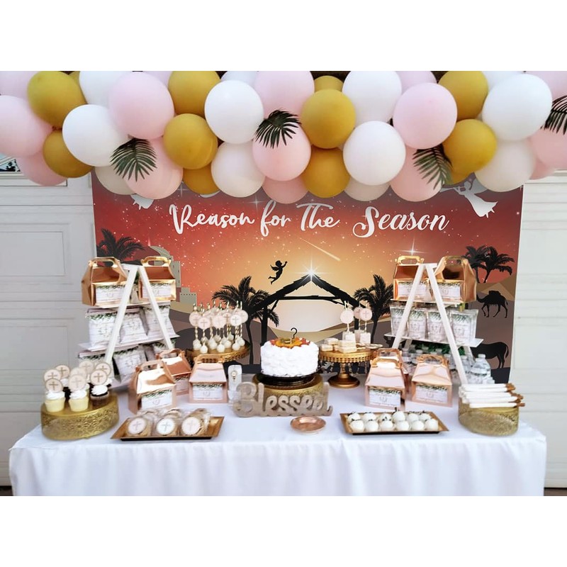 - Package: Only 1 pcs jesus is the reason for the season backdrop; send by folded; without backdrop stand, clips, grommets, pocket; Mocsicka box packaging, simple and good-looking; We're excited to assist you with all your birthday baby shower party supplies, including this fantastic photo backdrop that will add a special touch to your celebration! Let us help you create the perfect atmosphere for unforgettable memories.