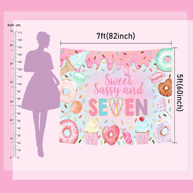- Package: Only 1 pcs sweet sassy and seven donut birthday backdrop; send by folded; without backdrop stand, clips, grommets, pocket